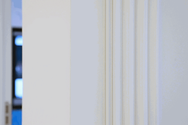 门缝带来的风险,让专利设计的风琴式门档来解决。屏蔽教学过程中外界的干扰,电控玻璃可以改变透明度,将教室内外两个世界柔和地隔开。全空间整合空气净化系统,联动大厅内的看板,可实时关注室内pm2.5的变化。
